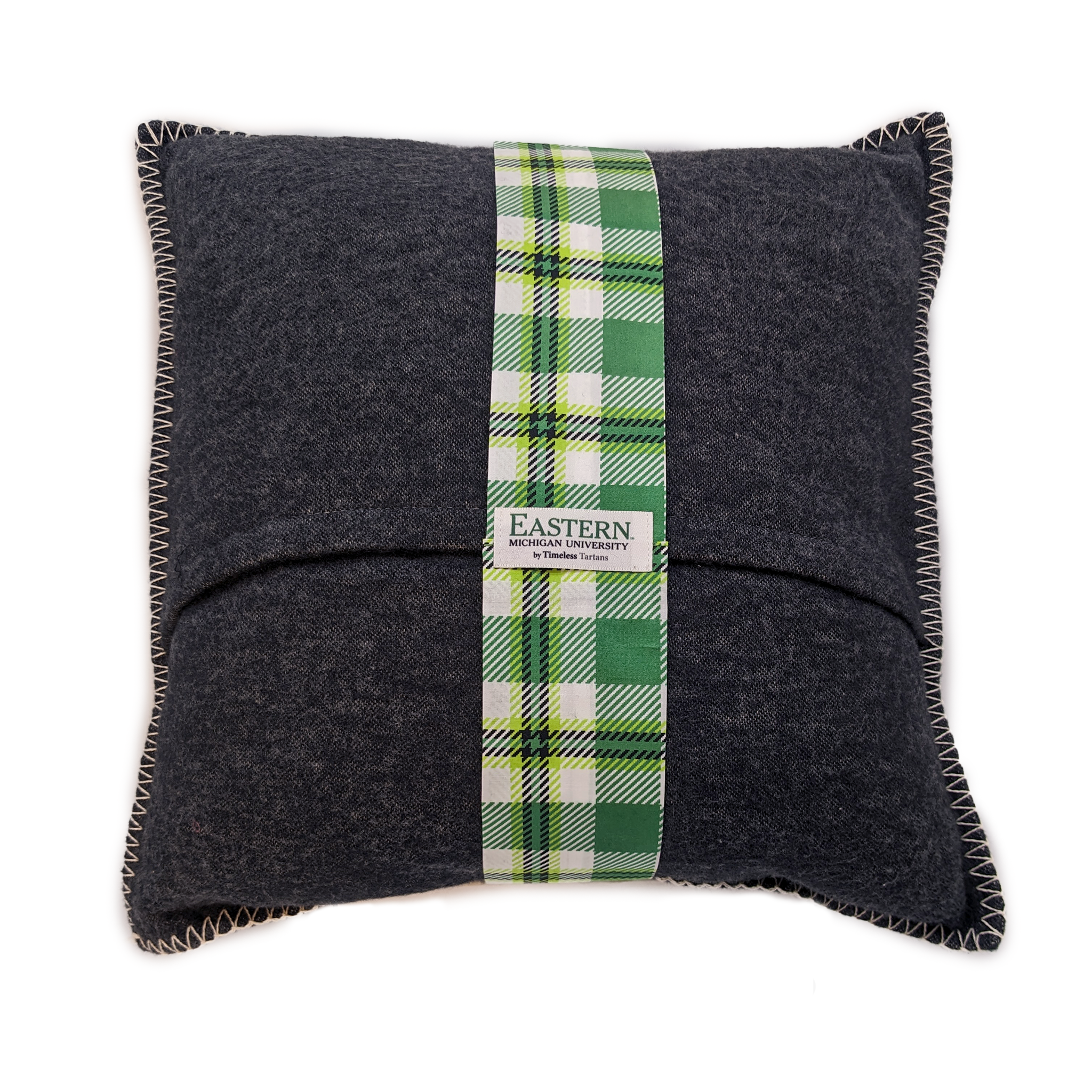 Looking to add a pop of collegiate color to your decor that complements the Applique Blanket? You can honor your alma mater in style with our high-quality flannel pillow covers made from environmentally-friendly recycled cotton. Each pillow cover is trimmed with distinctive border stitching and accented with a tartan band that wraps the pillow. Our patented algorithm combines EMU's founding year and campus coordinates with its official colors to create a unique, meaningful tartan pattern you’ll cherish for years to come.